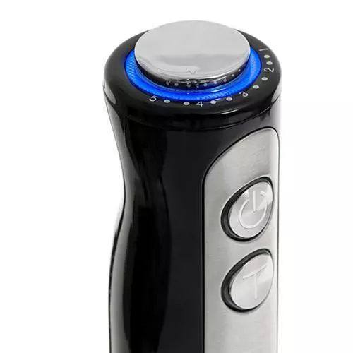 Погружной блендер AD 4625. Он позволяет взбивать пену, измельчать, растирать и легко готовить всевозможные муссы, крем-супы, пирожные и другие блюда, требующие подобной консистенции. Наконечник блендера изготовлен из прочной нержавеющей стали, что гарантирует возможность длительного использования. Устройство имеет 5 уровней скорости и функции Turbo. 5 уровней скорости Плавная установка скорости Турбо-функция Подсветка регулировки скорости Элегантная отделка из нержавеющей стали Нож из нержавеющей стали Номинальная мощность: 850 Вт Максимальная мощность: 1500 Вт Черный цвет