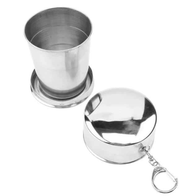 Похідна складана чашка із нержавіючої сталі RESTEQ 250 мл. Металева складна чашка брелок. Складна склянка брелок