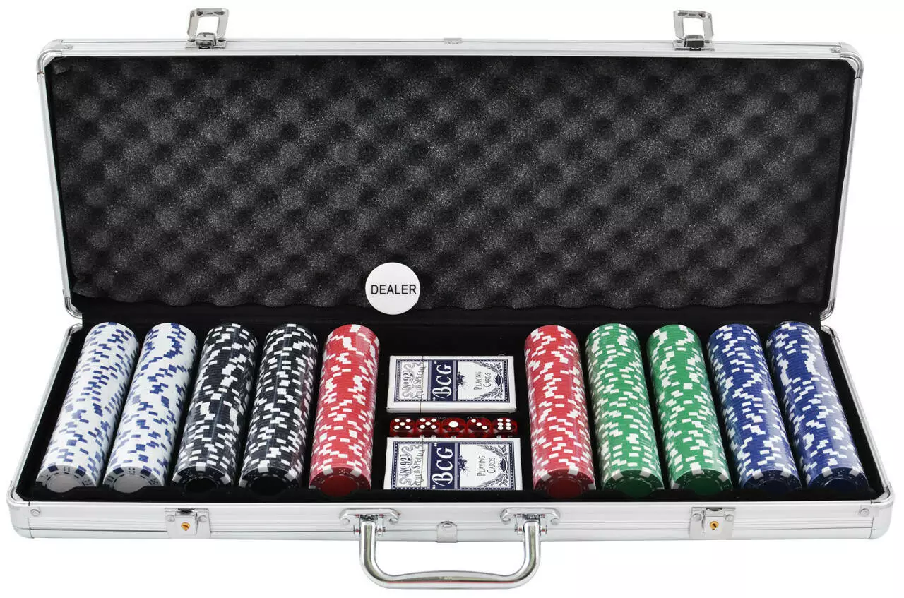 Покерный набор в алюминиевом кейсе на 500 фишек (62x21x8 см) ⚠️ Уцененный товар: Повреждён кейс ⚠️ №500