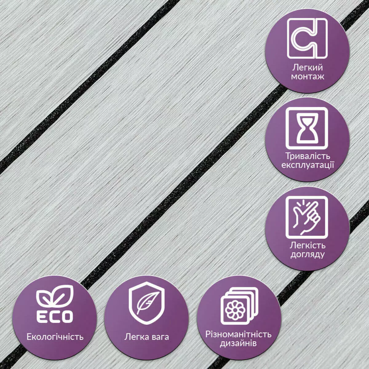 - Легка установка: Завдяки клейовому шару монтаж вінілових рейок