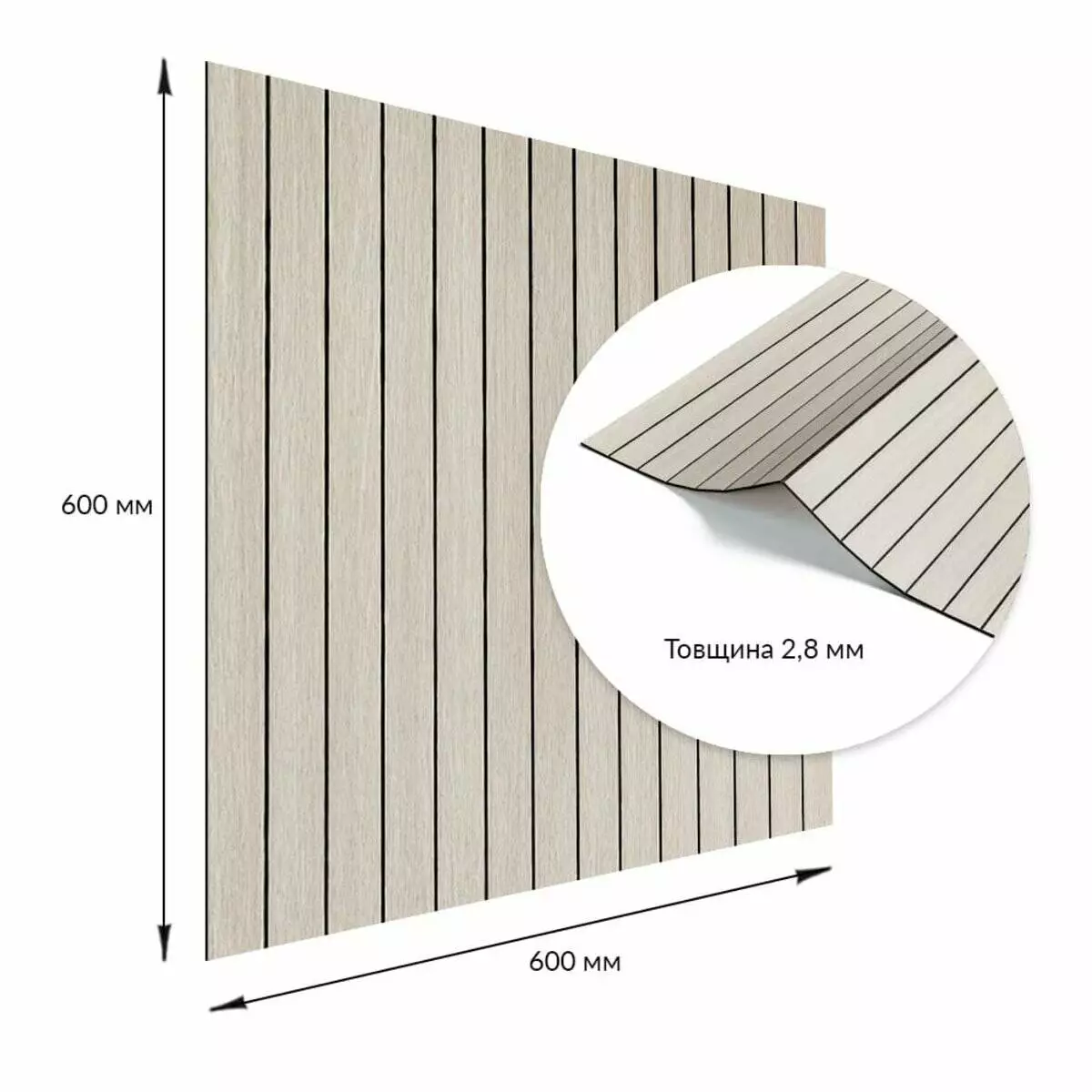 Площа покриття: 600х600 – 0,36 м², 600х3000 мм – 1,8 м²