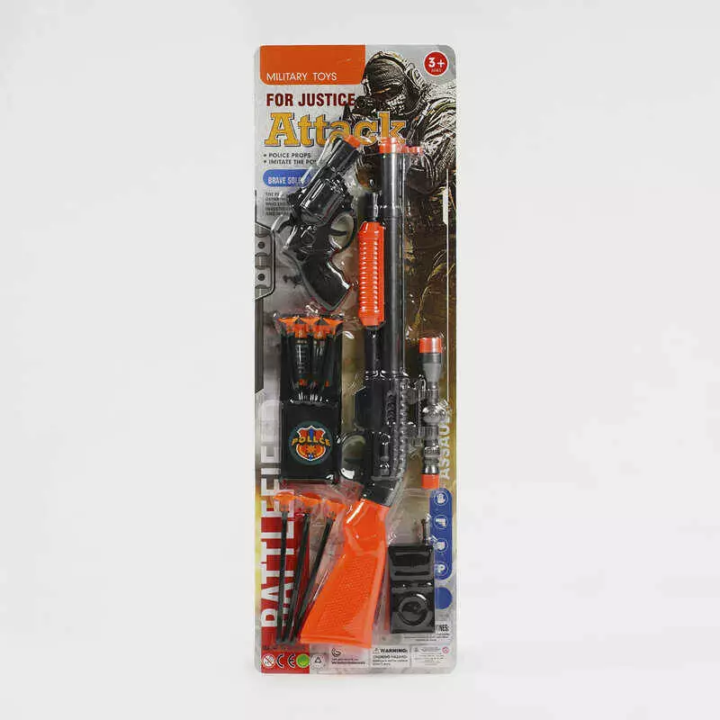 Главная > Каталог > Игрушки > Игрушечное оружие > Поліцейський набір A 328 (180/2) автомат, пістолет, патрони на присосці, рація, посвідчення, на листі оптом