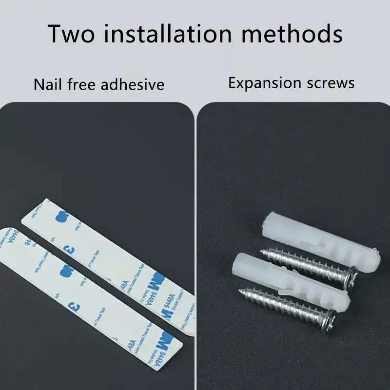 Два способа крепления: двухсторонний скотч или дюбели.