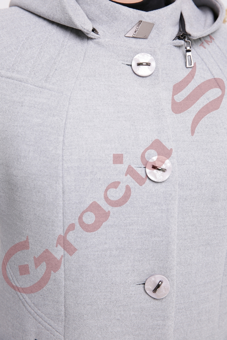 Предлагаем обратить внимание на полуприталенную модель пальто на пуговицах в тон ткани с карманами на молнии. Кстати, обрати внимание на отстежной капюшон - во время холодов он с легкостью заменит шапку, а в теплую погоду его легко можно отстегнуть и оставить дома.