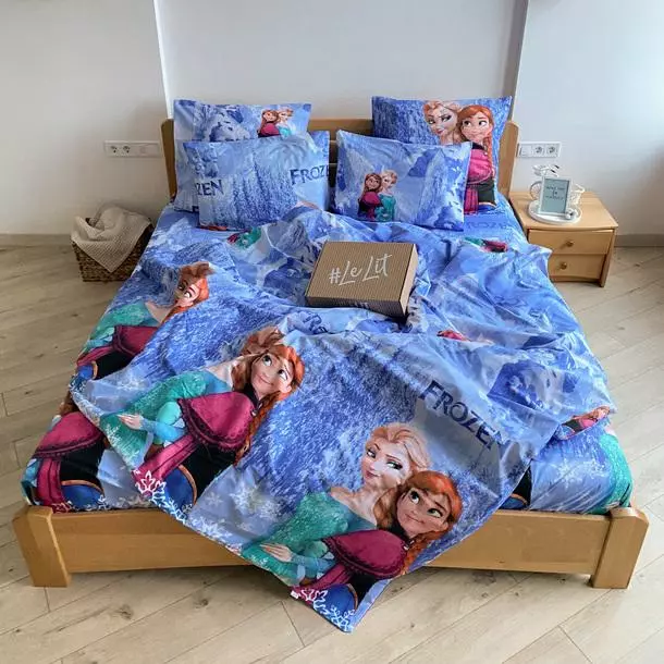 Полуторное постельное белье LeLIT 0781 ярко голубое с синим, принт "Эльза"