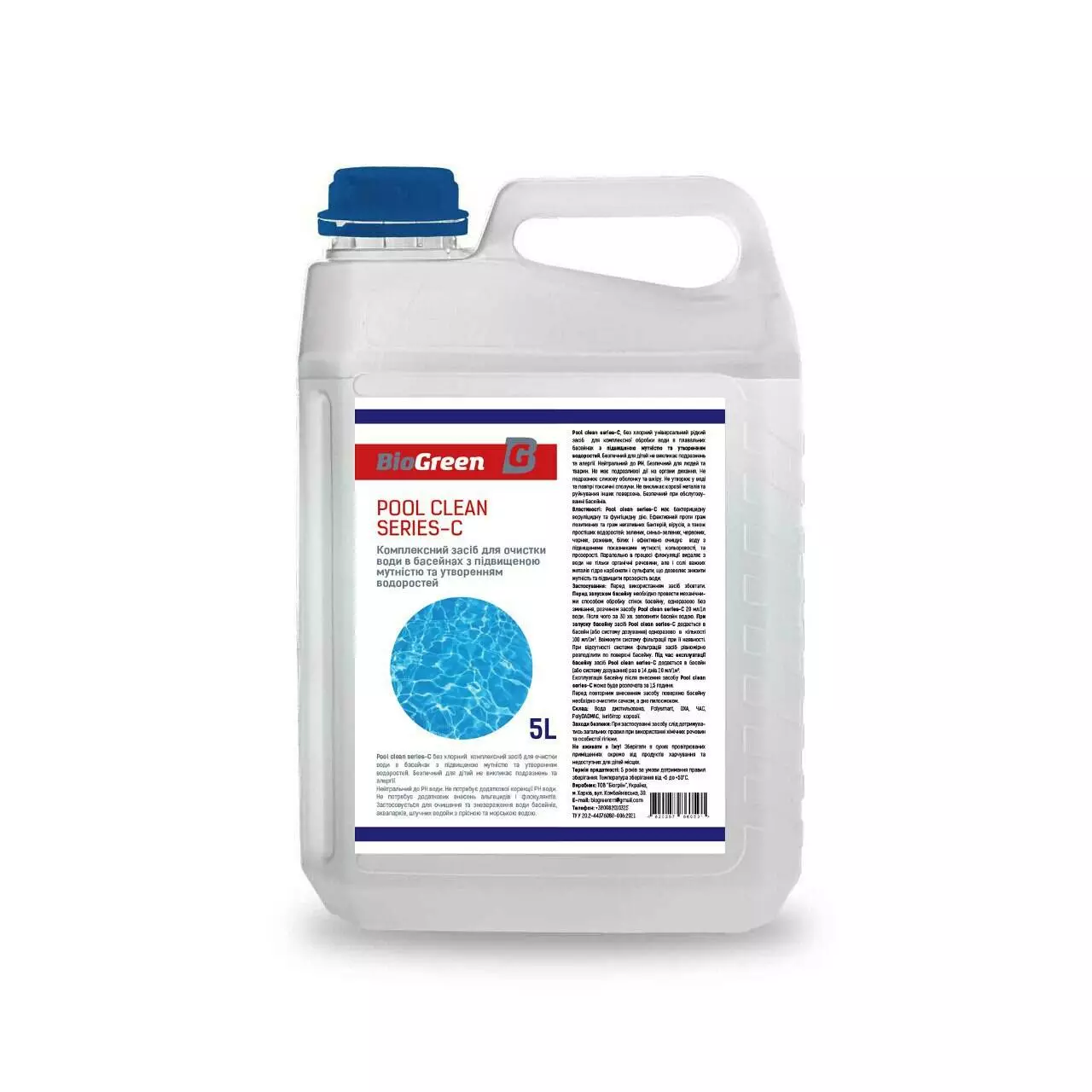 Pool clean series-C без хлорний універсальний рідкий засіб для комплексної обробки води в плавальних басейнах з підвищеною мутністю та утворенням водоростей. Безпечний для дітей не викликає подразнень та алергії. Нейтральний до РН. Безпечний для людей та тварин. Не має подразливої дії на органи дихання. Не подразнює слизову оболонку та шкіру. Не утворює у воді та повітрі токсичні сполуки. Не викликає корозії металів та руйнування інших поверхень. Безпечний при обслуговуванні басейнів.