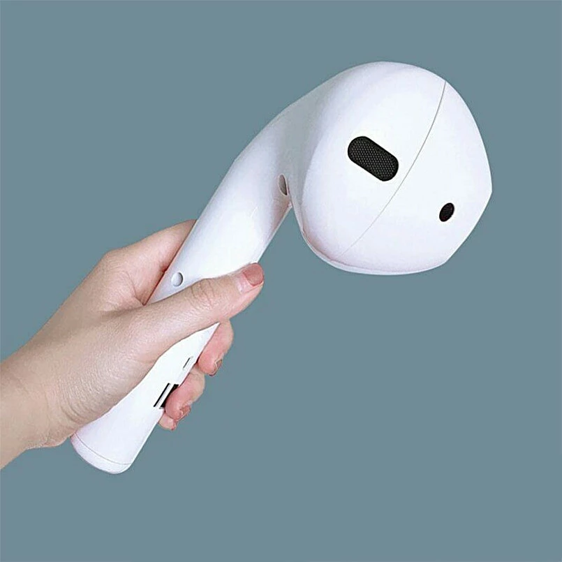 Блутуз колонка AirPods нагадує своєю формою великий навушник, що відразу виділяє її і користувача серед інших.