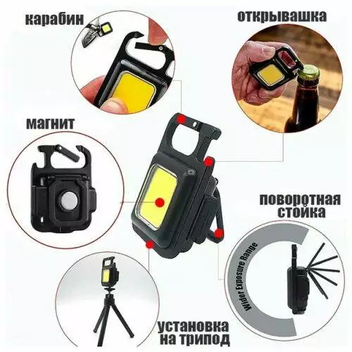 Портативный Магнитный Фонарик (500mAh, COB диод)