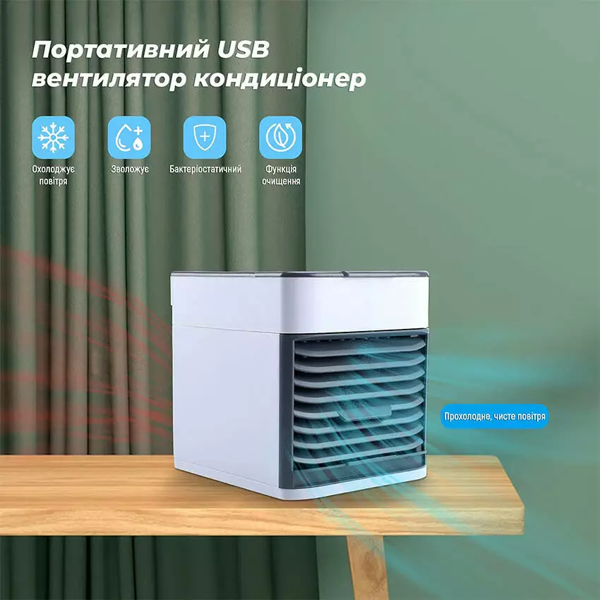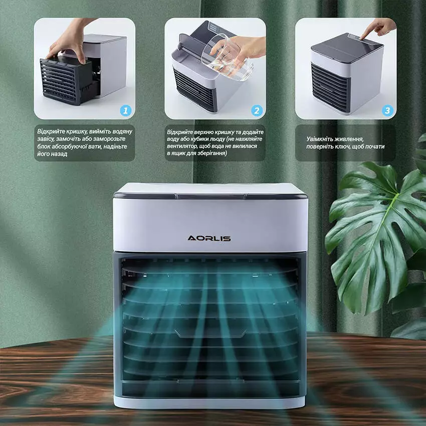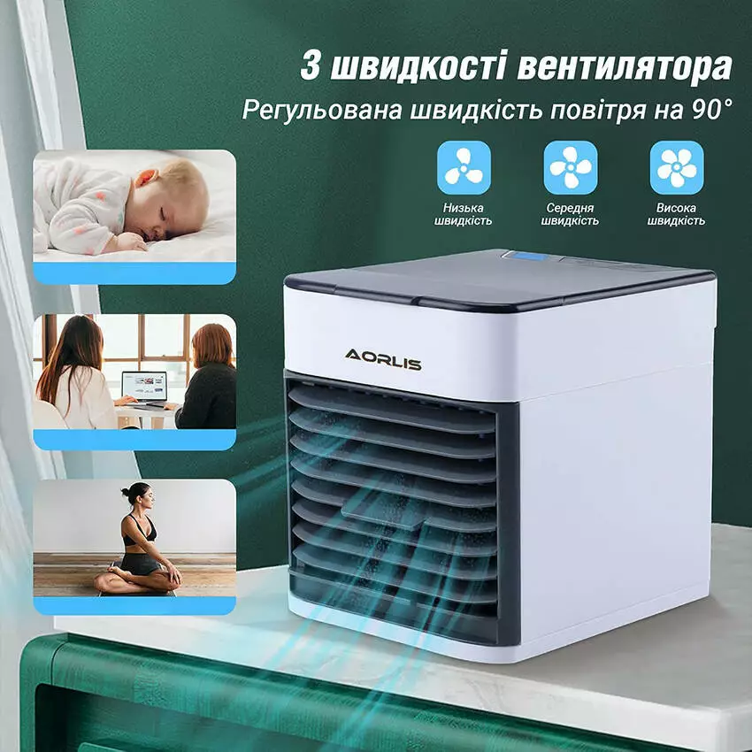 Портативный настольный мини кондиционер Aoris AO-78046 — идеальное решение для тех, кто ищет компактный и функциональный охладитель воздуха. Этот многофункциональный гаджет сочетает в себе функции увлажнителя воздуха и вентилятора, обеспечивая комфортный микроклимат в вашем помещении. Питание от USB делает его мобильным и удобным в использовании, будь то дома, в офисе или в путешествии.