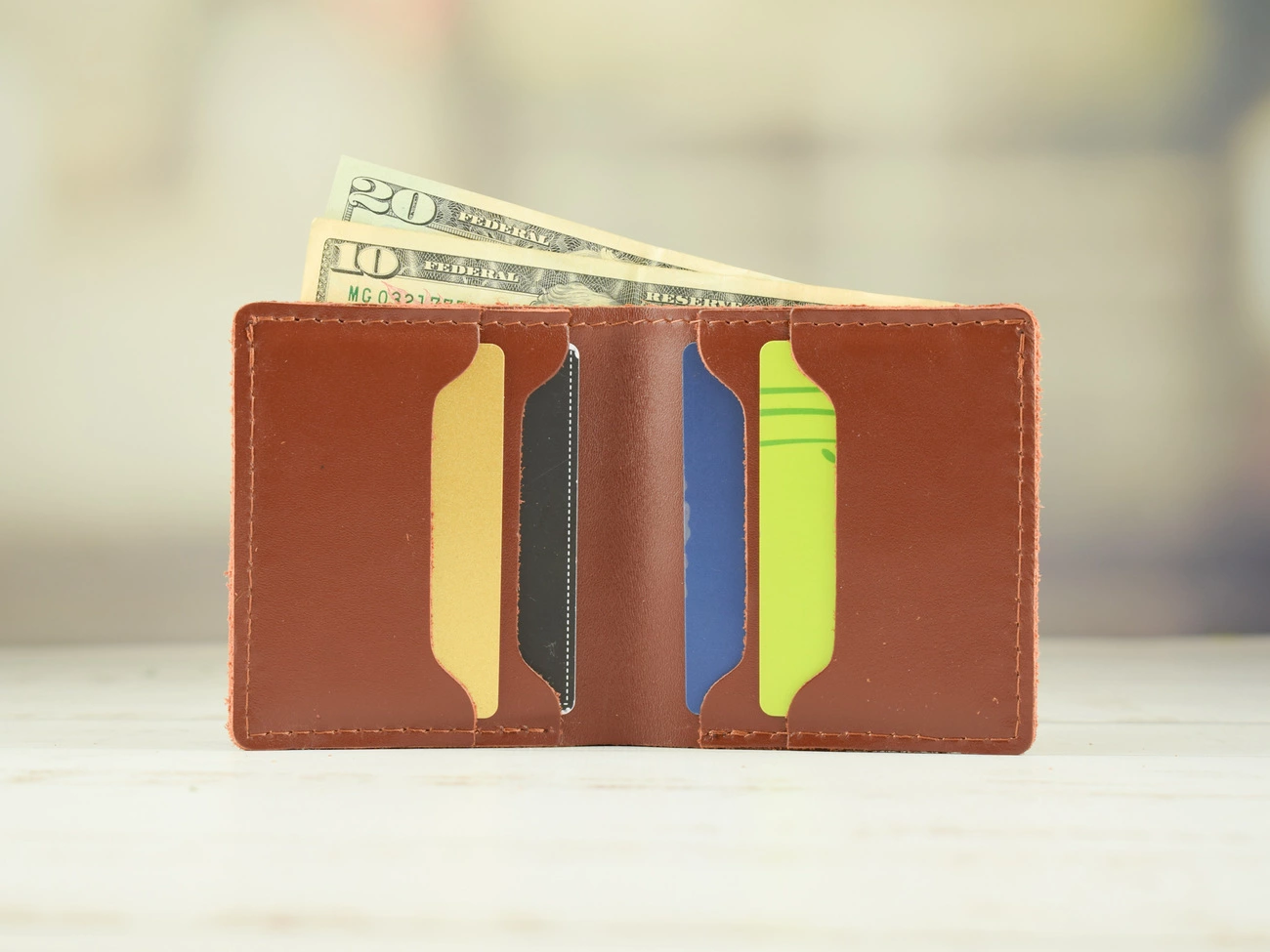 Зручне, компактне портомене. Складається з одного основного відділення для купюр та чотирьох відділень для карток.