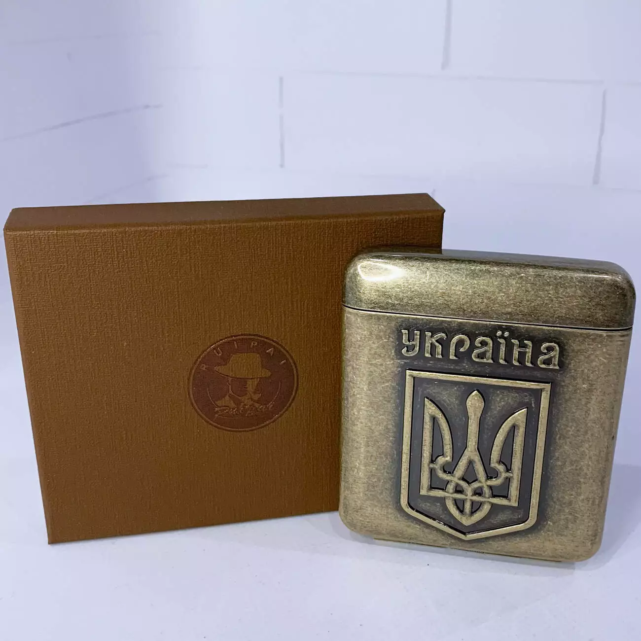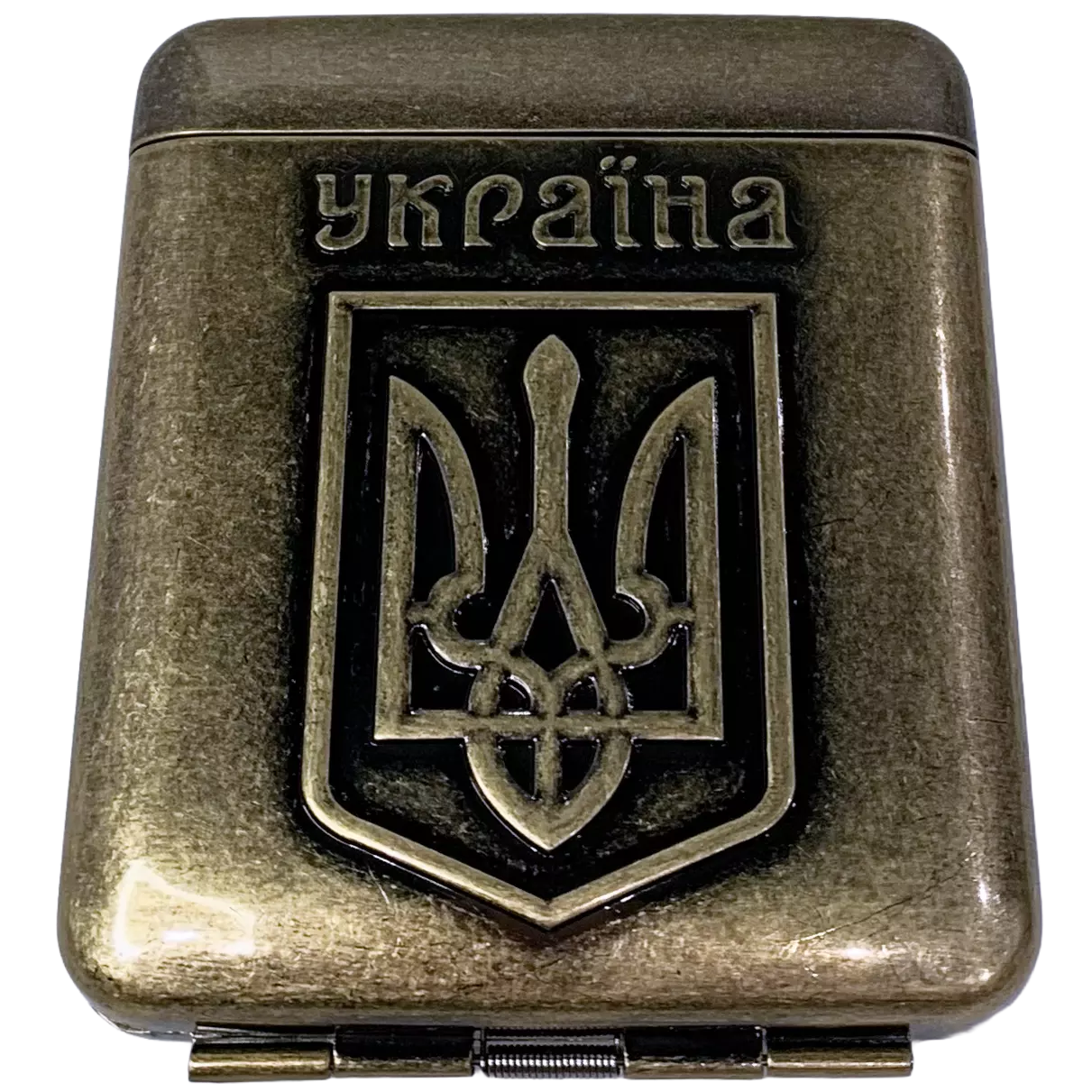 Металлический портсигар с рельефной надписью «Україна» — практичный аксессуар и одновременно тематический сувенир. Вмещает до 20 стандартных сигарет, защищает их от сминания и загрязнений в кармане или сумке.