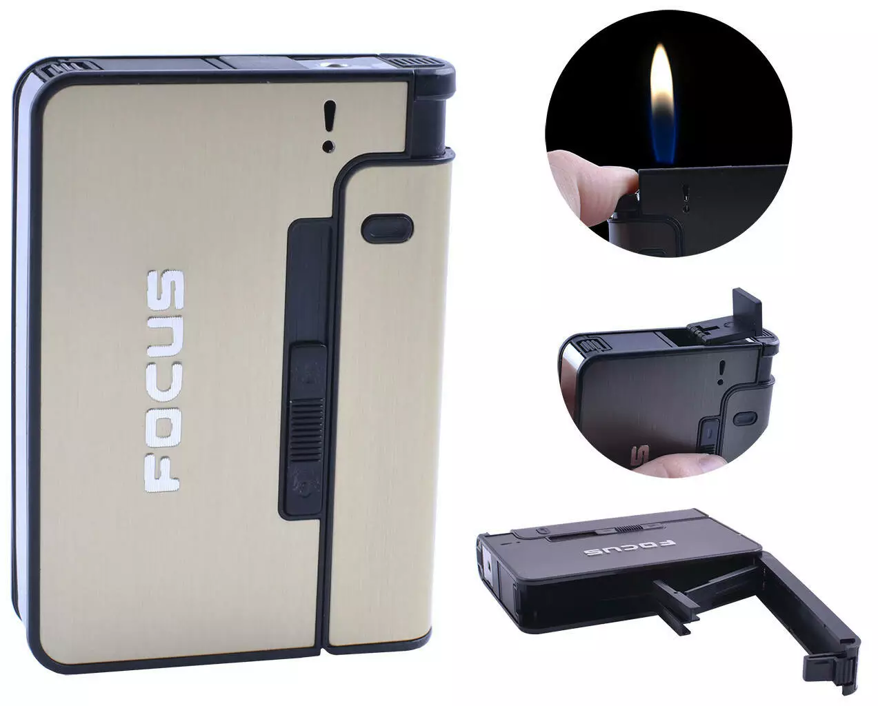 Портсигар + зажигалка на 10 сигарет FOCUS XT-4938 Gold