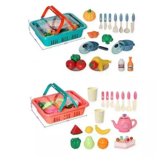 Фотография 1 товарной позиции интернет-магазина детских игрушек www.smarttoys.com.ua Посуд 604EA-B продукти, 2 види (чайник, склянки/каструля, сковорідка), бліст., 27-22-8,5см.