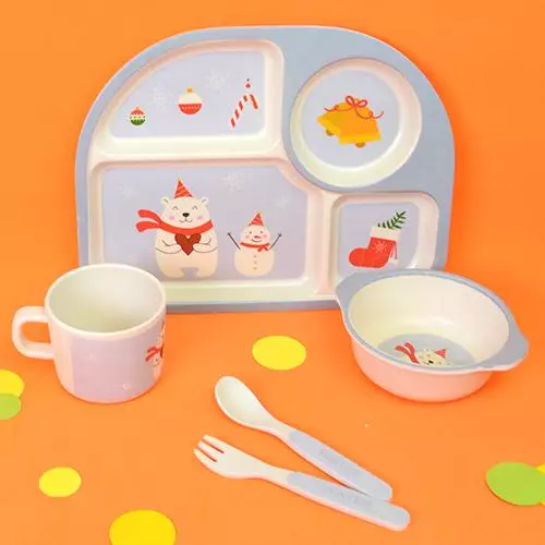 Посуд дитячий бамбук 5 предметів (2 тарілки, виделка, ложка, чашка) обов'язково сподобається дитині та допоможе батькам зацікавити малюка процесом їди. Набір з бамбукового волокна. Поверхня посуду трохи шорстка і приємна на дотик, і в той же час ідеально рівна. Перевагою бамбукових виробів перед склом є те, що вони дуже легкі. Тому такий посуд можна сміливо давати маленьким дітям, крім того, бамбукове волокно - природний екологічно чистий матеріал, що біорозкладається і не токсичний. У набір входять: тарілка для супів, тарілка з відсіками, кухоль, ложка та вилка. Характеристики : Дитячий посуд з еко-волокон бамбука; Складається із безпечних органічних компонентів природного походження; Має неймовірно приємні тактильні властивості; Яскраве забарвлення покращує апетит і підніме настрій; Антибактеріальність; Високі гігієнічні властивості; Простота догляду; Відсутність токсичних компонентів; Температура використання: від 0 до + 80 ° С; Можна мити в посудомийній машині; Щоб посуд з бамбукового волокна зберігав свої властивості та зовнішній вигляд, не наливайте в нього окріп і не використовуйте його в мікрохвильових печах. Комплектація : Велика тарілка; Глибока миска; Чашка; Ложка; Веделка.