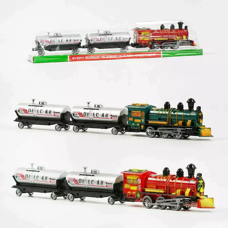 Потяг 538-2 Y (60/2) 2 кольори, інерція, локомотив та два вагони, в слюді
