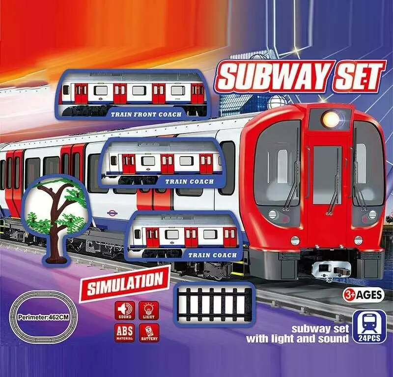 Залізниця JHX 5916 (36/2) 24 елементи, 3 вагони, розмір: 60х4х5 см, периметр колії: 462 см, підсвічування, звуки, аксесуари, в коробці