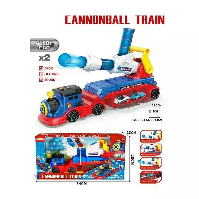 Потяг JP 588-34 A (12) звуки, підсвіч., 2 металопластикові машинки, механічна ракетниця з м’якими кульками, м’які кульки, на батарейках, в коробці