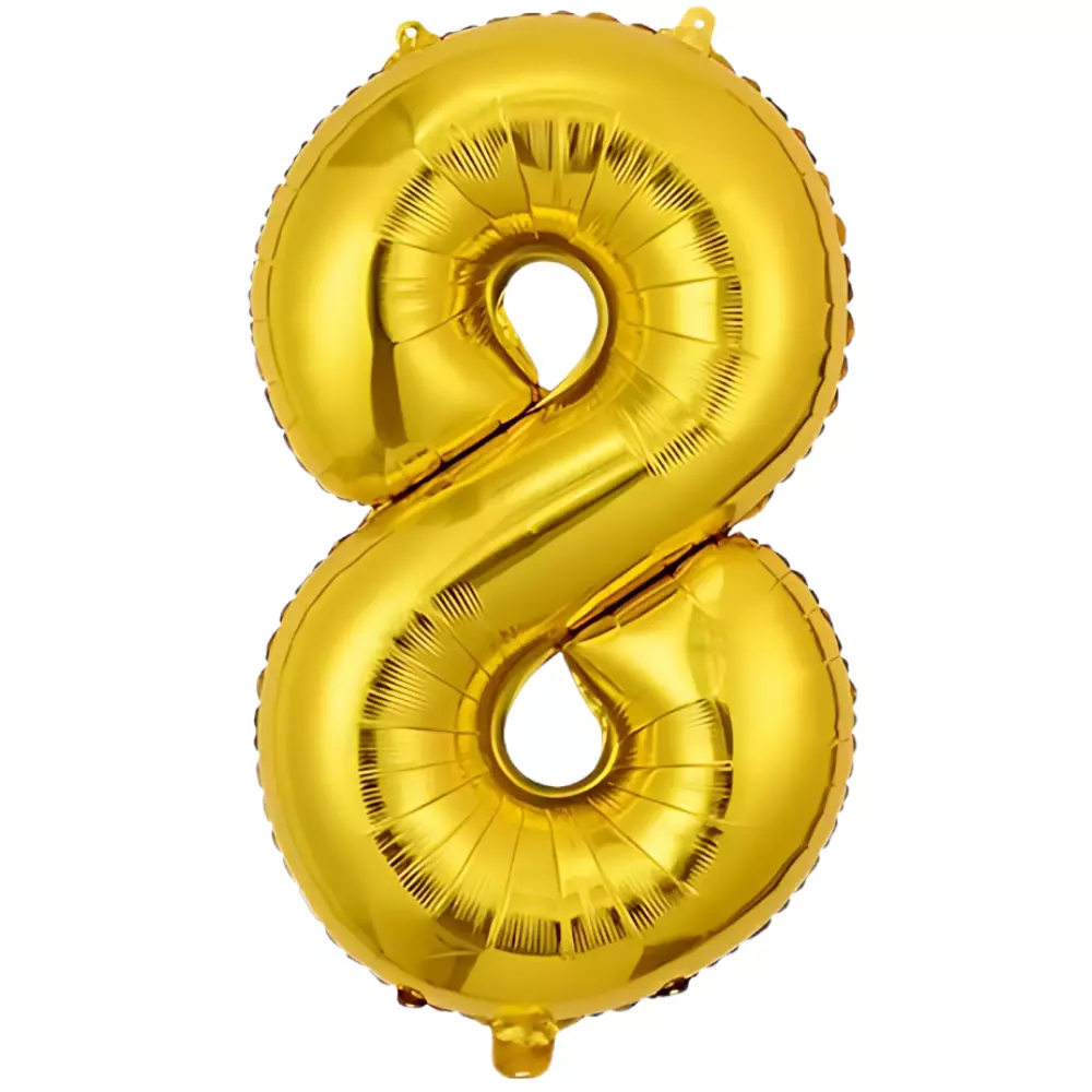 Фольгована кулька у вигляді цифри «8» золотого кольору — стильне і