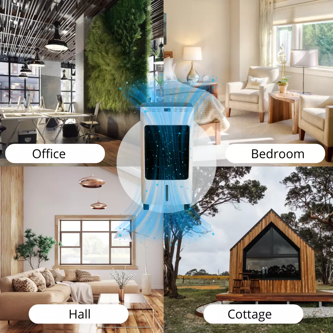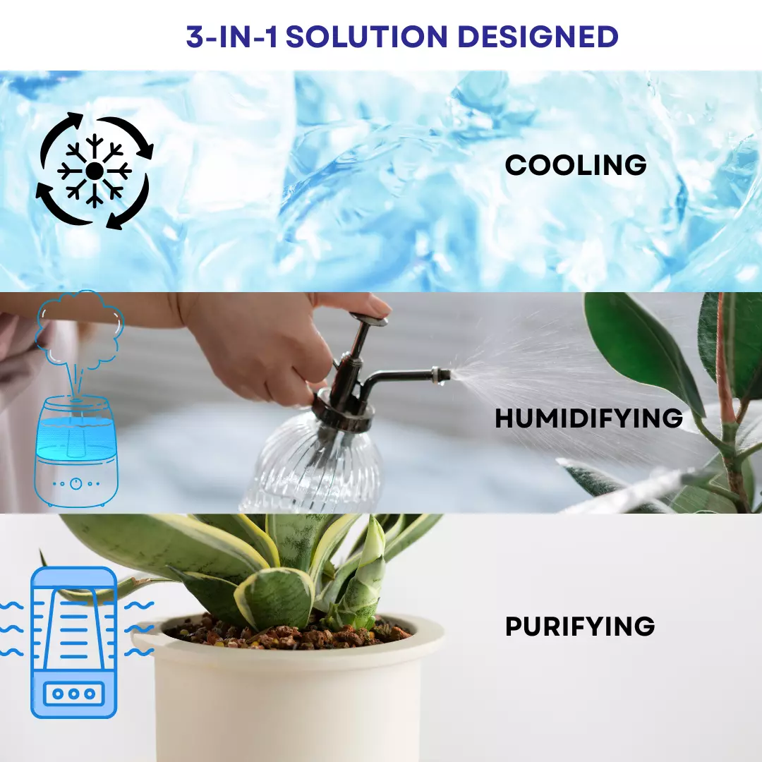Відчуйте прохолодніше та чистіше повітря з охолоджувачем, зволожувачем та очищувачем повітря ADM 3-в-1 – універсальним та енергоефективним рішенням для охолодження вашого дому чи офісу. Поєднуючи переваги охолодження, зволоження та очищення повітря, цей пристрій розроблений для забезпечення максимального комфорту в компактному та сучасному корпусі.