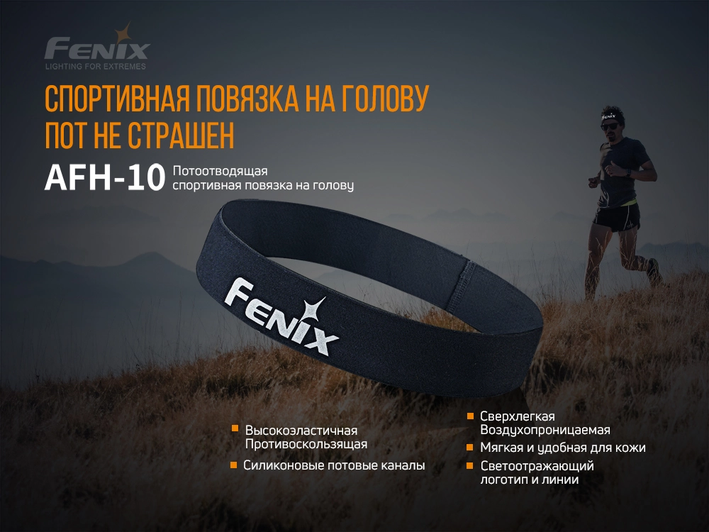 Спортивна пов'язка на голову знаменитої торгової марки Fenix. Модель розроблена для полегшення життя активних і енергійних людей. Вона спеціалізована для випадків, коли ви займаєтеся інтенсивними пробіжками. При тривалих і високих фізичних навантаженнях певну проблему представляє потовиділення. Однак при наявності зручною пов'язки Fenix AFH-10 ви забудете про такі неприємності. Все, що залишиться – це відчуття легкості і свободи, а також позитивні враження від занять тренуваннями.