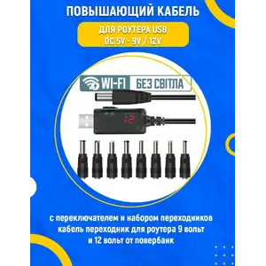 Повышающий кабель для роутера USB DC 5V - 9V / 12V 90 см с переключателем и набором 8 переходников кабель