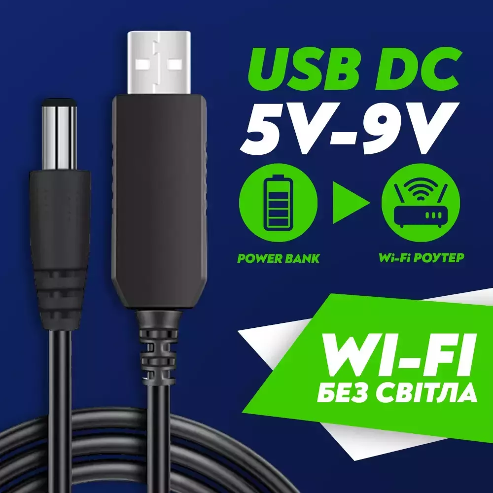 Повышающий кабель работает практически от любого повербанка, даже от не имеющего быстрой зарядки, так как шнур содержит внутри встроенную плату повышающую напряжение до 9 вольт. Совместим с большинством моделей WiFi роутеров, а также любых других устройств с соответствующими параметрами. Кабель имеет простое подключение без дополнительных настроек: USB штекер вставляется в Powerbank, а DC штекер в устройство которое нужно запитать.