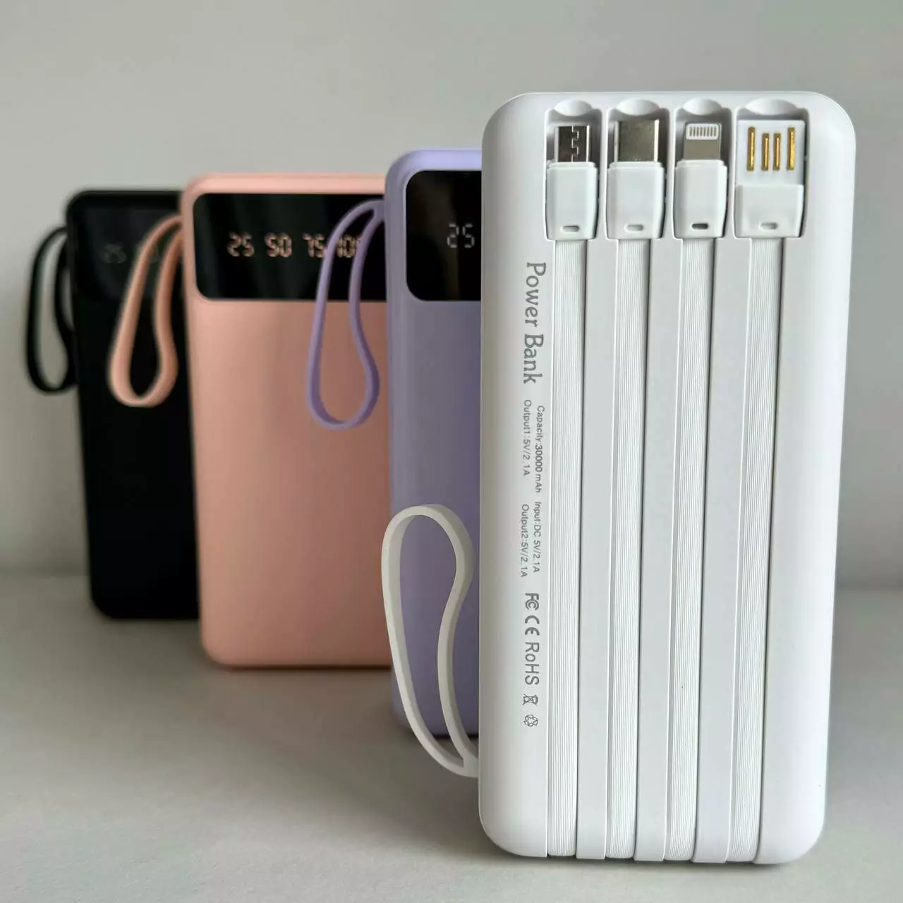 Power Bank Intelligent Fast з кабелем USB+Micro+Type-C+Lightning (30000mAh) - це високоємний портативний зарядний пристрій, який дозволить вам залишатися на зв'язку в будь-який час. Завдяки ємності 30000mAh він здатний багаторазово заряджати ваші гаджети, а вбудовані USB, Micro-USB, Type-C і Lightning-кабелі забезпечують універсальну сумісність без необхідності носити додаткові дроти для використання.Компактний та ергономічний дизайн робить його ідеальним рішенням як для подорожей, так і для повсякденного використання.