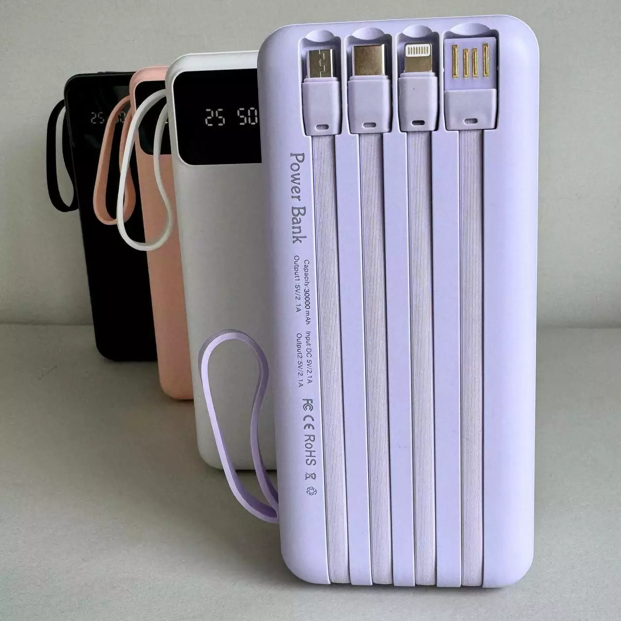 Power Bank Intelligent Fast з кабелем USB+Micro+Type-C+Lightning (30000mAh) - це високоємний портативний зарядний пристрій, який дозволить вам залишатися на зв'язку в будь-який час. Завдяки ємності 30000mAh він здатний багаторазово заряджати ваші гаджети, а вбудовані USB, Micro-USB, Type-C і Lightning-кабелі забезпечують універсальну сумісність без необхідності носити додаткові дроти для використання.Компактний та ергономічний дизайн робить його ідеальним рішенням як для подорожей, так і для повсякденного використання.