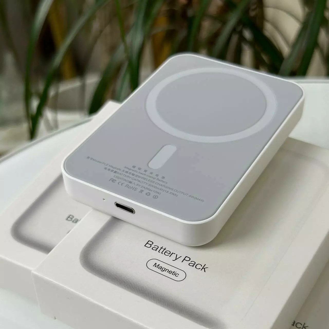 Power Bank MagSafe Battery Pack - є ідеальним вибором для всіх, хто цінує зручність і функціональність. Цей компактний і стильний зовнішній акумулятор ідеально підходить для вашого телефона, забезпечуючи миттєве під'єднання завдяки вбудованій технології MagSafe. Вбудовані магніти надійно фіксують його на пристрої iPhone 12 і вище. MagSafe Battery Pack дає можливість заряджати телефони не використовуючи ніяких зайвих кабелів і блоків живлення.