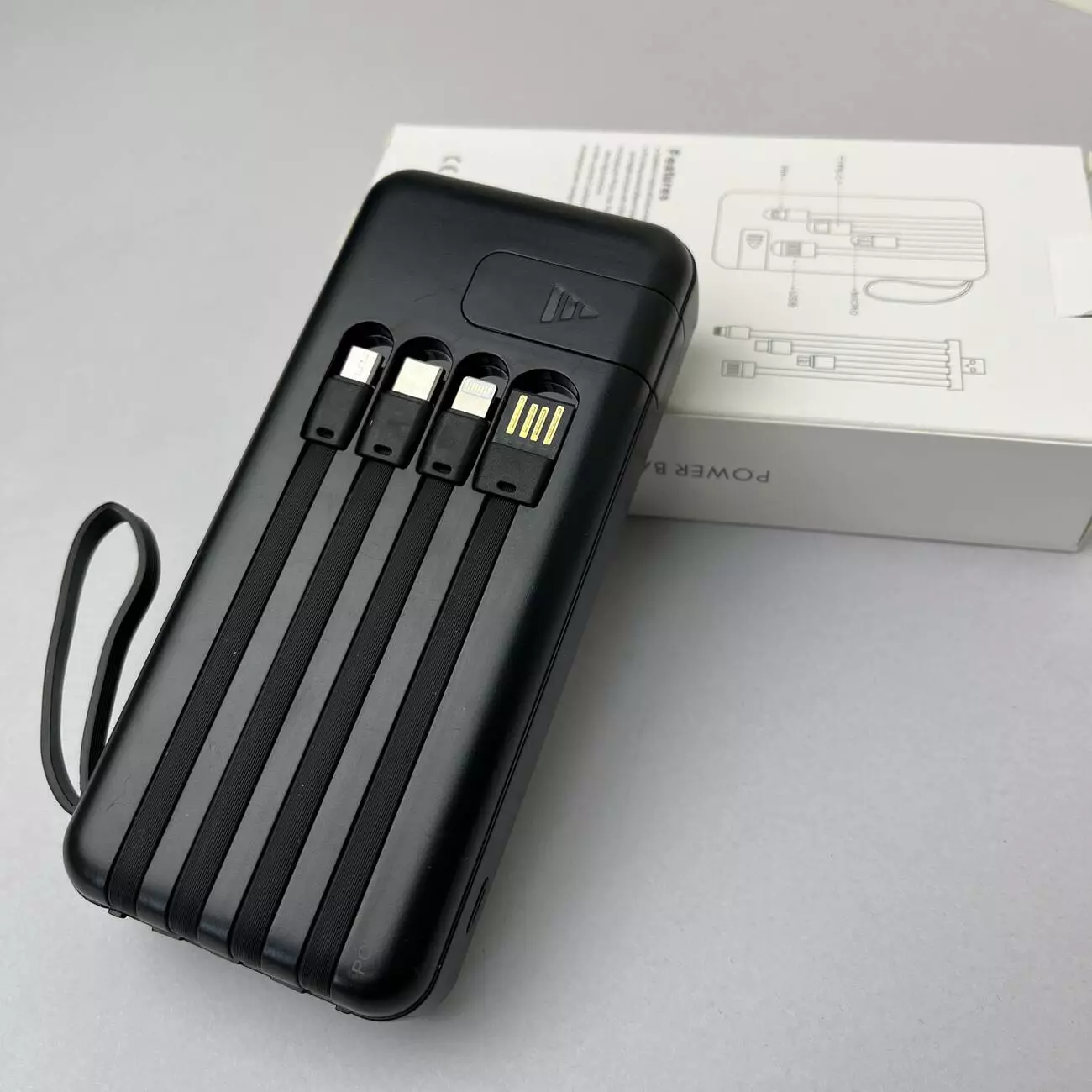 Power Bank Super с кабелем USB+Micro+Type-C+Lightning (20000mAh) - Надежный и мощный Power Bank Super станет незаменимым источником энергии для ваших устройств в любой момент и в любом месте. Благодаря эргономичному дизайну, быстрой зарядке и универсальным портам, он идеально подходит для смартфонов, планшетов и других гаджетов. Компактный размер позволяет удобно носить его с собой, а высокая емкость гарантирует длительную работу без необходимости частой подзарядки. Это идеальный выбор для активной жизни и путешествий.