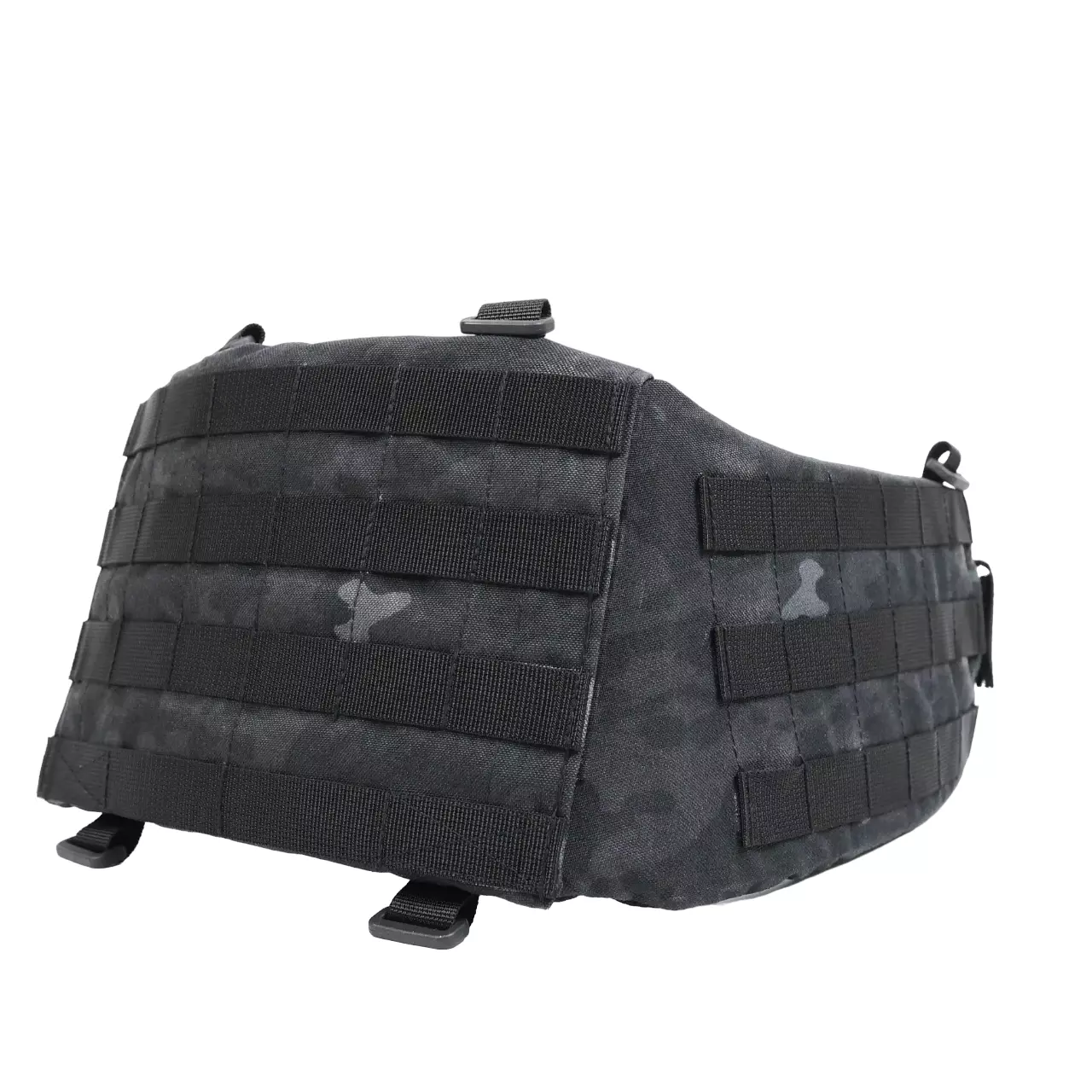 На боковых частях три ряда системы molle для крепления итогов или дополнительного снаряжения. Задняя часть увеличена и выполнена с 4-мя рядами molle, что позволяет максимально снарядить пояс необходимым снаряжением. Регулировка пояса происходит в 2 стороны благодаря специальному двухщелевому фастексу WJ, и скрытым двухщелям в самом поясе.
