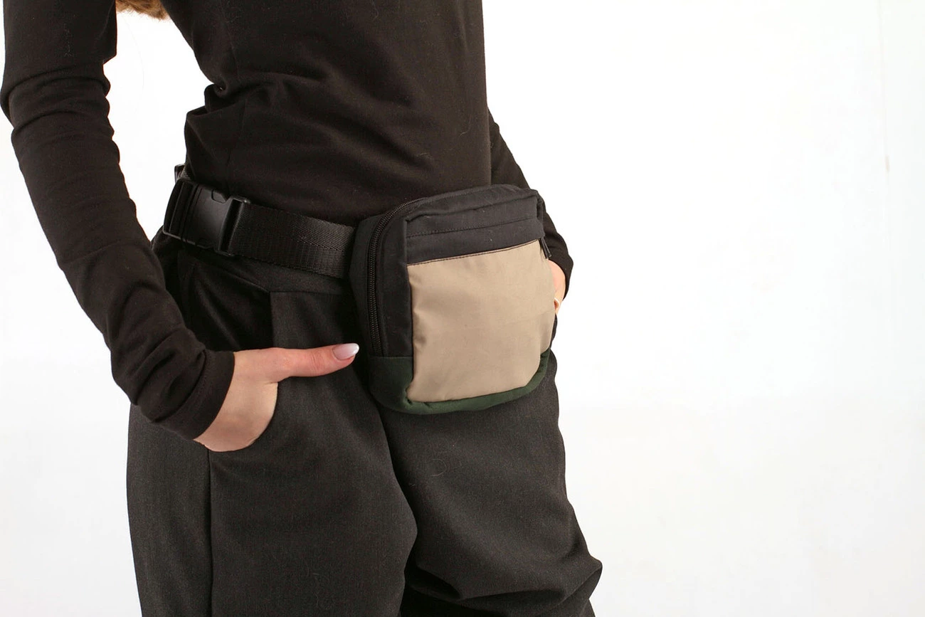 поясная сумка квадрат, бежевая