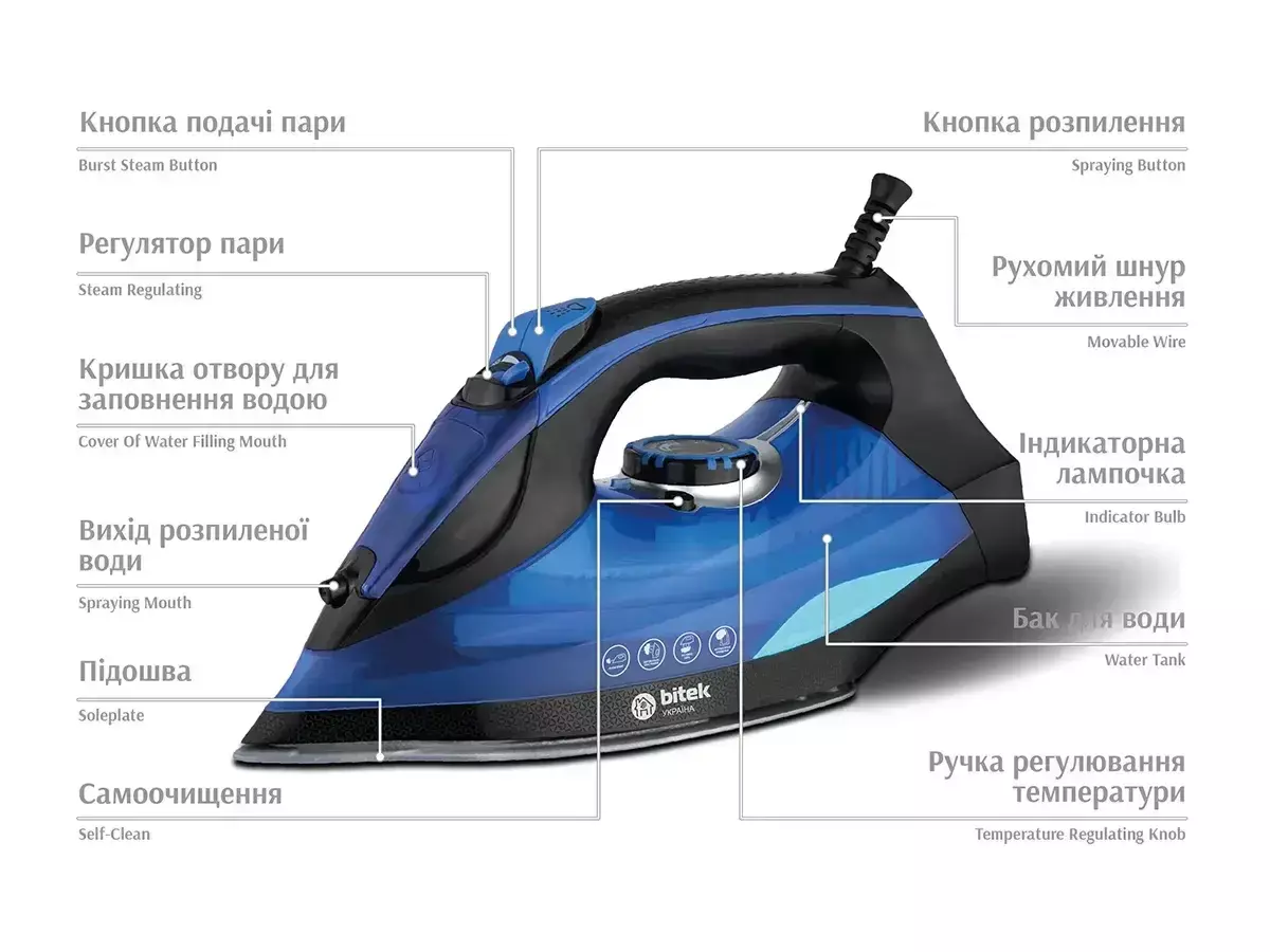 Праска парова з керамічною підошвою 3200Вт BITEK BT-1321B