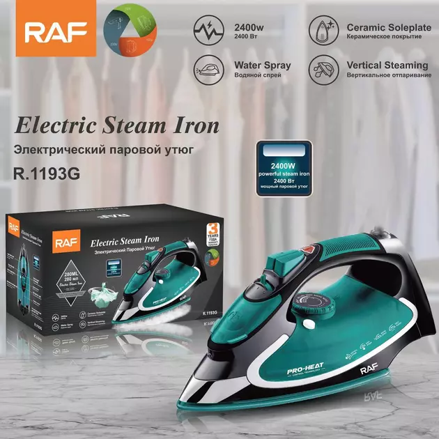Праска парова з керамічною підошвою на 2400 Вт з відпарювальним носиком RAF R 1193G (10)