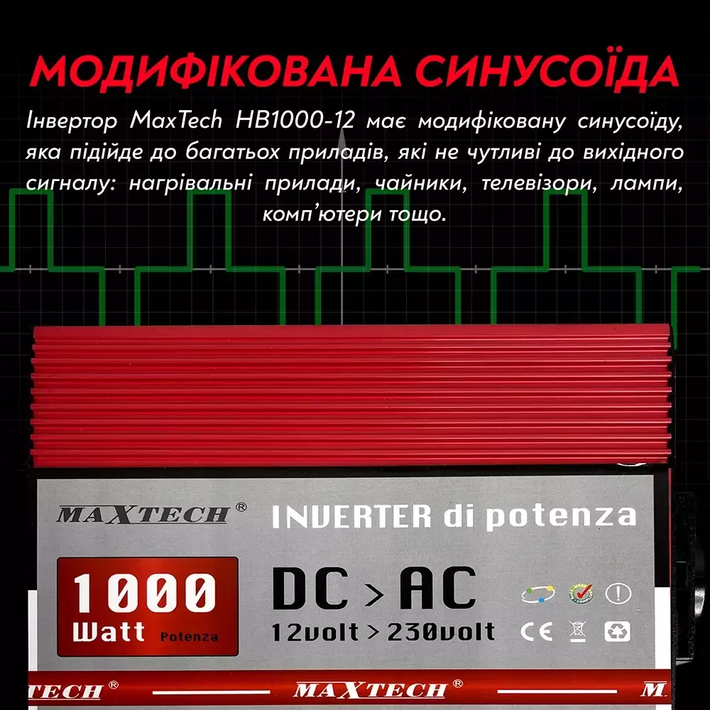 MaxTech HB1000-12 имеет модифицированную синусоиду, которая