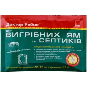 Это универсальный продукт. Разработан для применения во всех видах и типах систем очистки сточных вод.  Сильнодействующая комбинация нескольких штамов бактерий в одном пакете. Она выполняет работу нескольких препаратов: убирает запах, разлагает и перерабатывает ил,  очищает и ухаживает за системой, не давая ей заиливаться, открывает поры в грунте, восстанавливает естественный дренаж. Рекомендации по применению:   Рекомендуется применять каждые 30-45 дней. Для септиков — содержимое пакета засыпать в унитаз и дважды слить воду. Для уличных туалетов — содержимое пакета растворить в ведре с водой и залить в выгребную яму. Оптимальный результат достигается в жидкой среде. Максимальный результат достигается в объеме 1500 л (1,5 куб. м.)