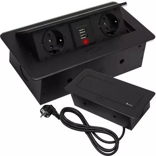 ВБУДОВУВАНА РОЗЕТКА В СТІЛЬНИЦЮ ЧОРНА З USB