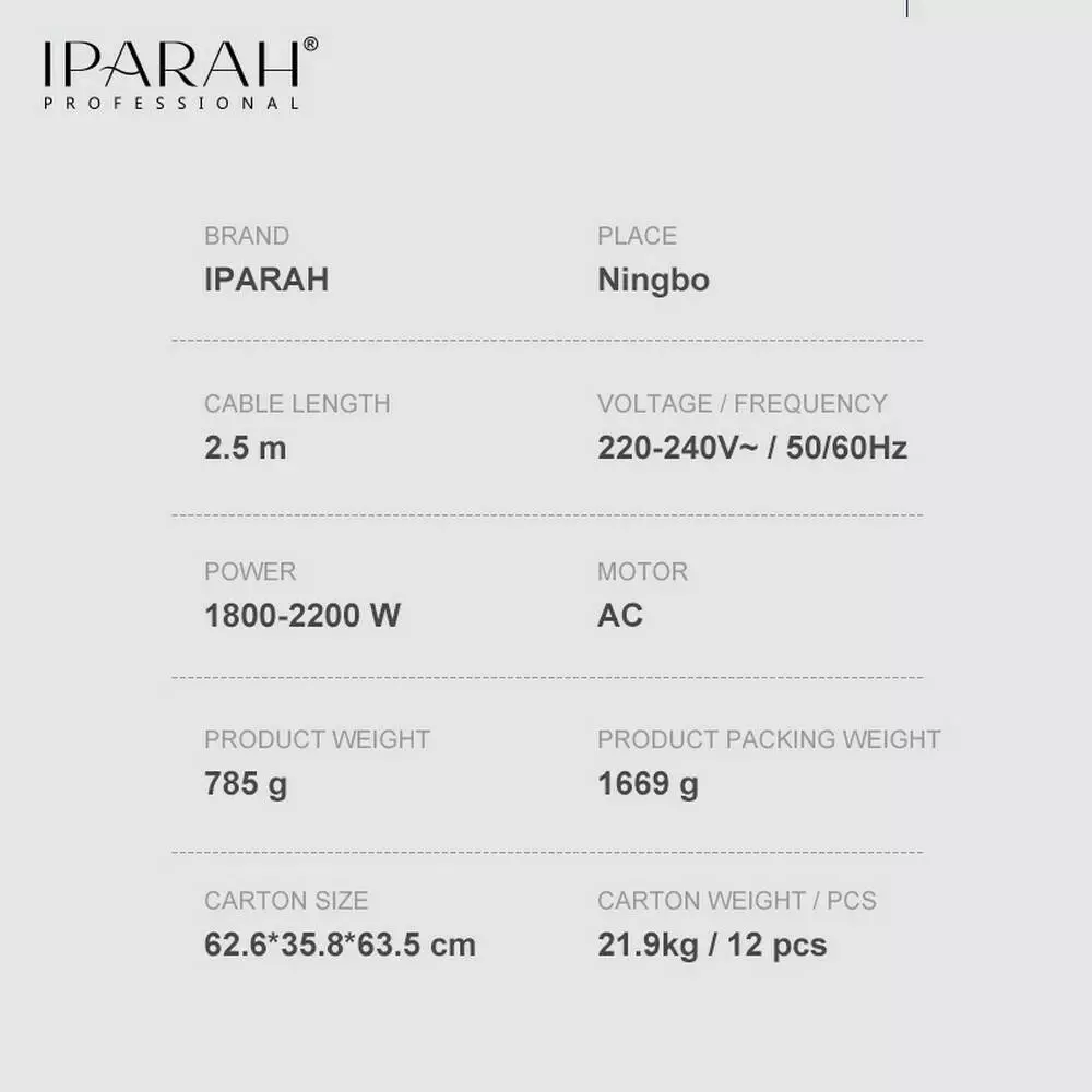 Професійний фен IPARAH P-350, 2 рівня обдува, 3 рівня температури, 1800-2200W