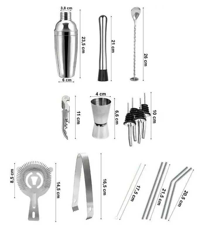 • Набір бармена складається з 17 елементів, які допоможуть вам створити чудовий напій.
