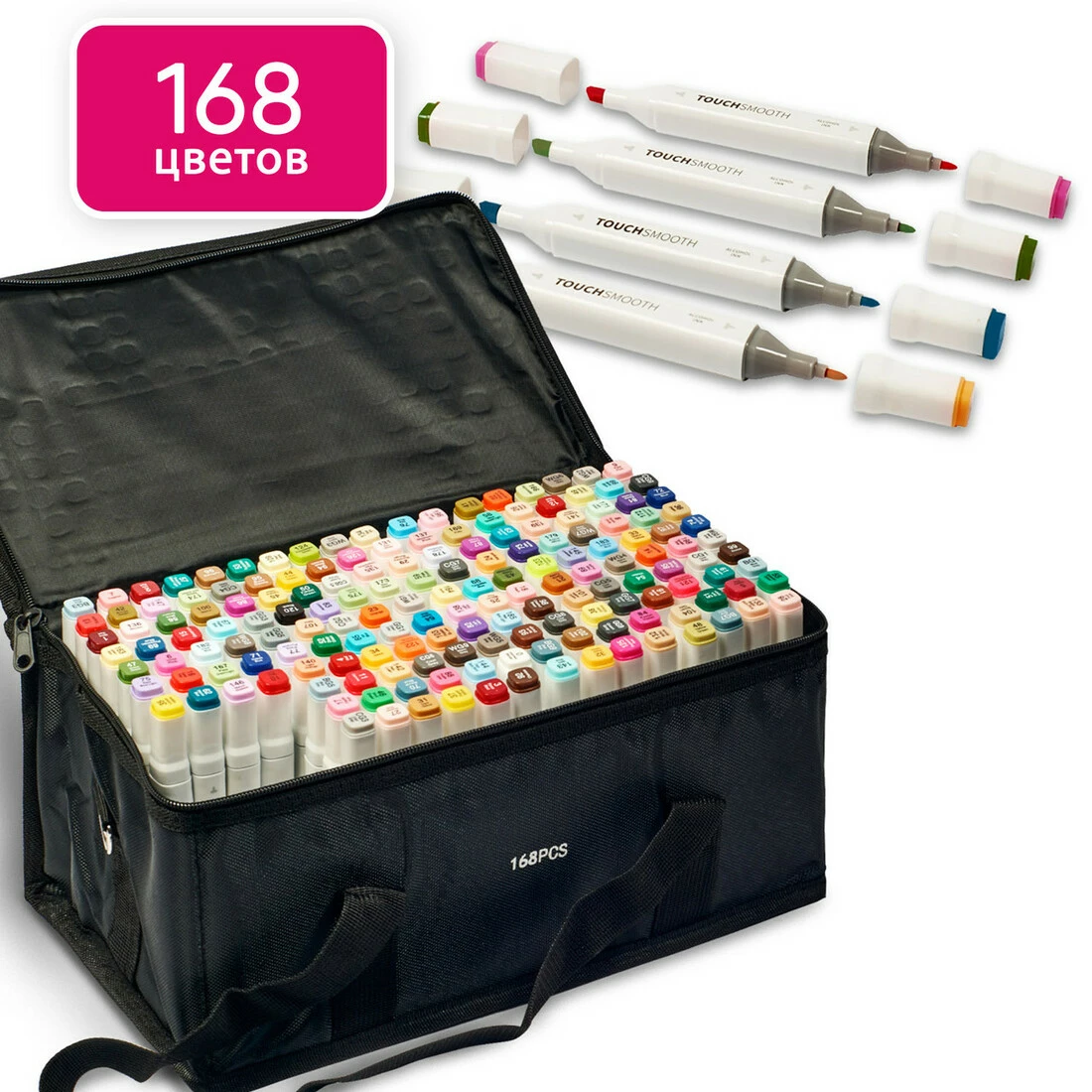 В наборе 168 маркеров разных цветов.