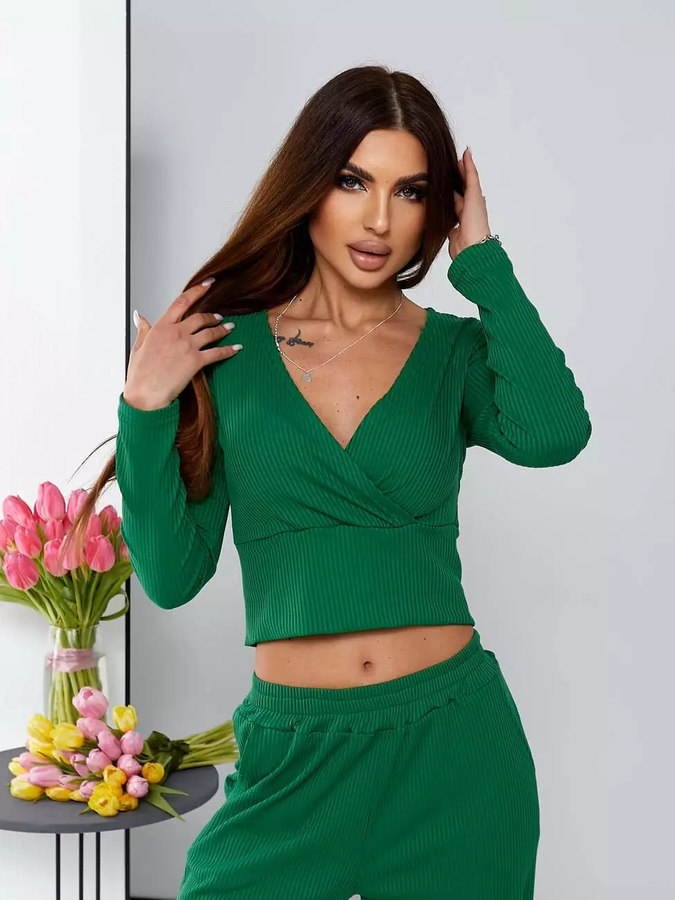 Костюм-рубчик прогулянковий зеленого кольору