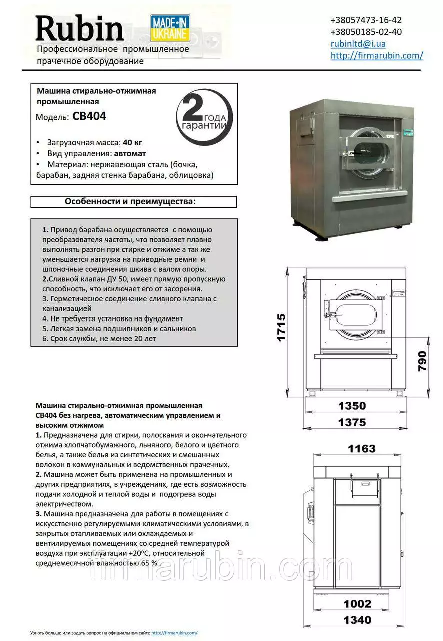 Промышленная стиральная машина СВ404 (подрессоренная, загрузка до 40 кг, без нагрева)