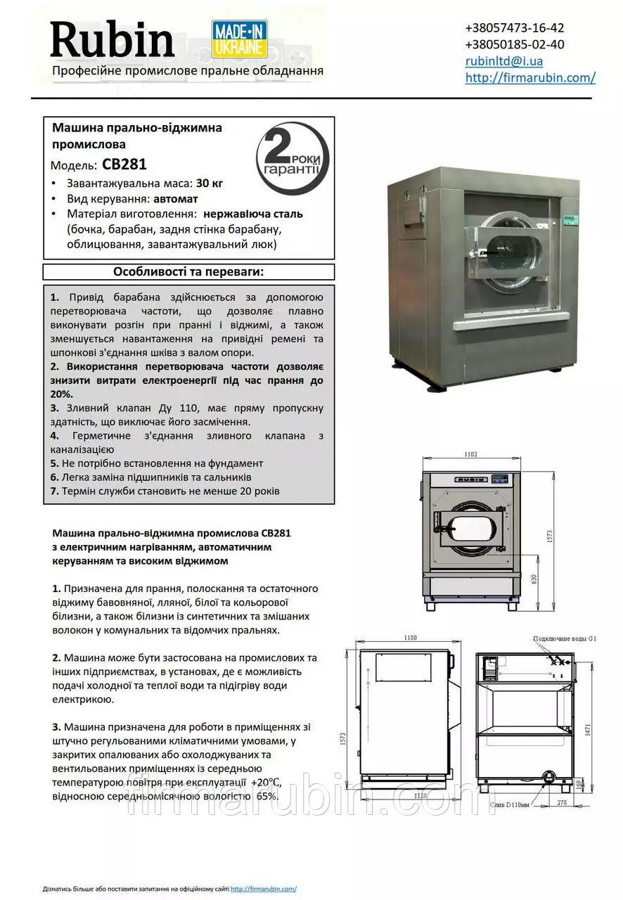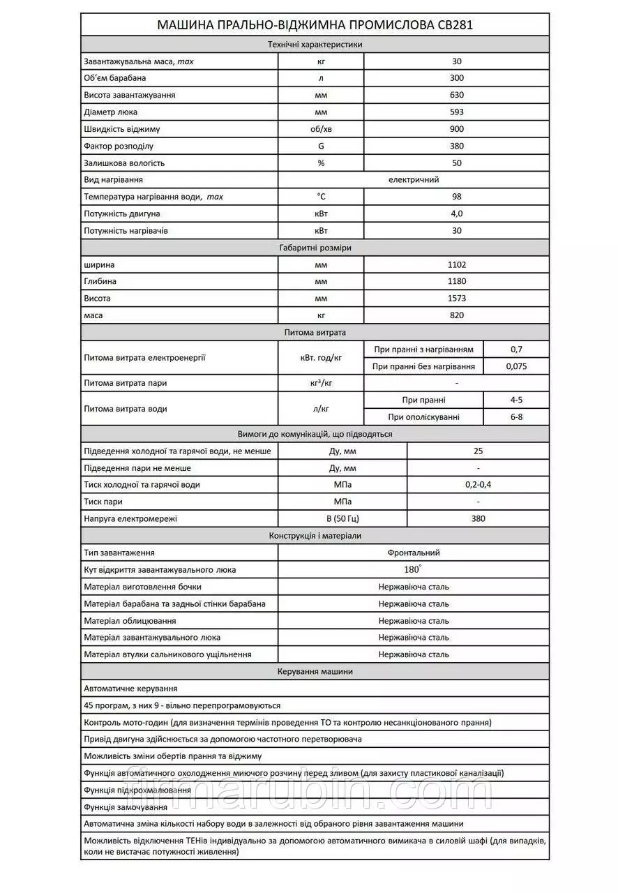 Профессиональная стиральная машина с окончательным отжимом на 30 кг сухого белья, с электрическим нагревом.