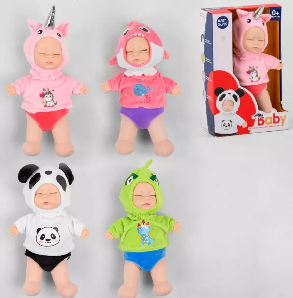 Чарівний пупсик виглядає, як справжнє немовля, маленький носик, пухкі щічки та злегка надуті губки. Личко знаходиться в дуже умиротвореному сплячому стані. Малюк зріст 30 см, у нього дуже приємне, м'яке тіло, а ручки та голова виконані з якісного пластику. Пупс одягнений у плюшевий знімний комбінезон, який пошитий за образом тварини. Особливості моделі: - каже тато-мама; - плаче; - сміється; - Кашляє; - бурмотить.