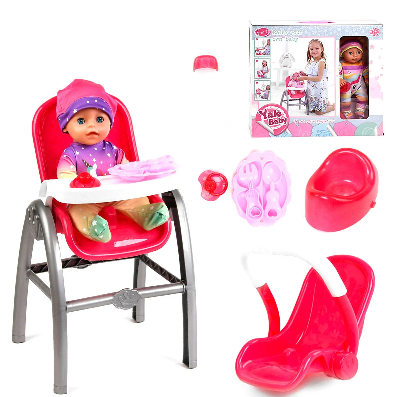 Очаровательный пупсик с детским стульчик-трансформером и аксессуарами сделает сюжетно-ролевые игры маленькой девочки невероятно интересными и увлекательными! Игрушечный малыш позволит Вашей доченьке максимально выражать всю свою любовь и нежность, а также научит проявлять заботу о близких! Особенности: