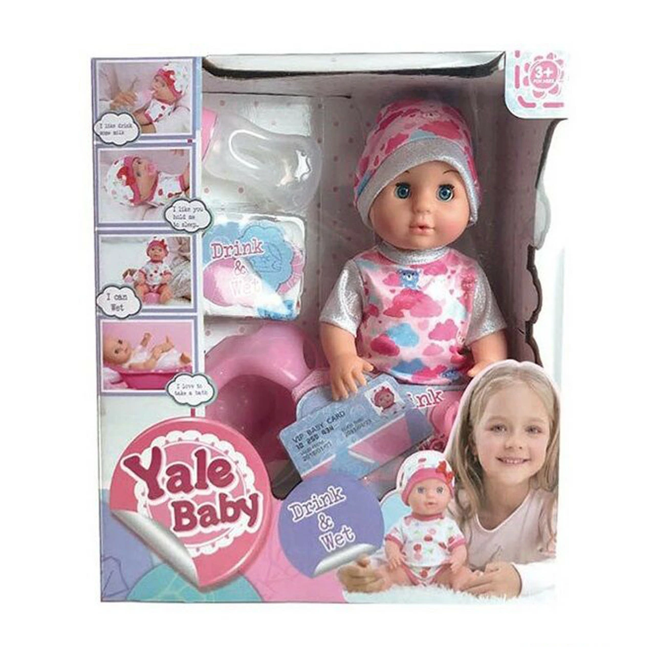 комплектуется: бутылочкой, горшком, памперсом, соской и ID-картой.