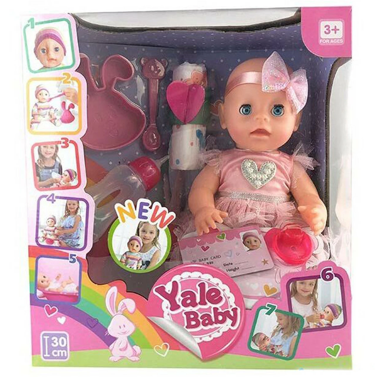 блестящая повязка с бантом. Функциональный пупс может пить из