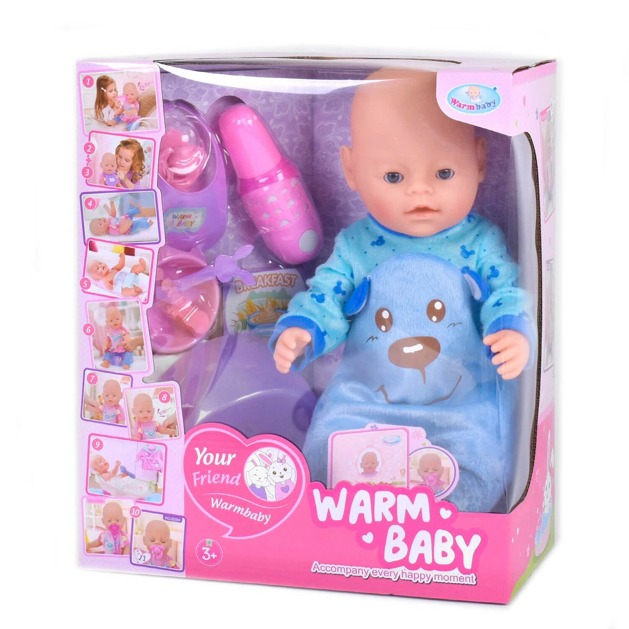 Пупс функциональный с аксессуарами Kimi со звуковым эффектом 40 см Голубой 6975922582917