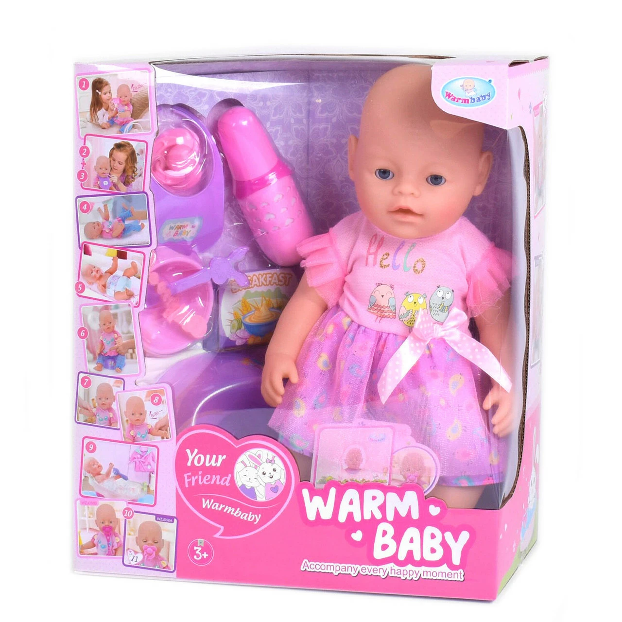 Пупс функциональный с аксессуарами Kimi со звуковым эффектом 40 см Розовый 6975922583396