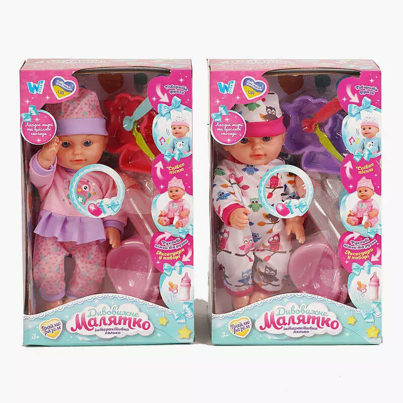 Главная > Каталог > Игрушки > Куклы > Пупс функціональний UKA-A 0940-5 (32/2) 2 види, "WToys", ОЗВУЧУВАННЯ УКРАЇНСЬКОЮ МОВОЮ, звук, від батарейок, п`є, ходить в туалет, в коробці оптом